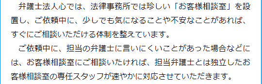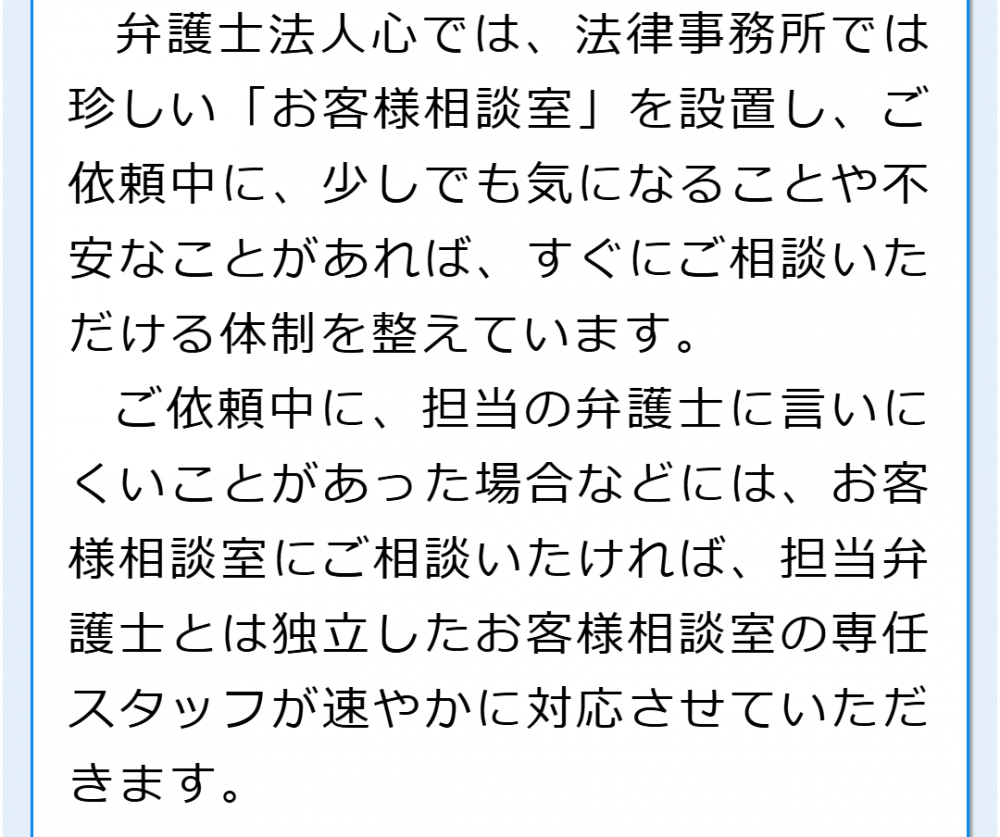 当法人では、任意整理をお考えの方が安心してご相談・ご依頼いただけるよう、お客様相談室を設けています。詳細はこちらのページをご覧ください。